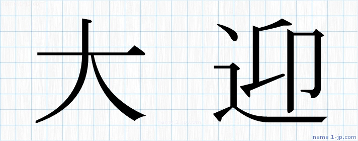 「大迎」習字見本 かっこいい大迎の名前