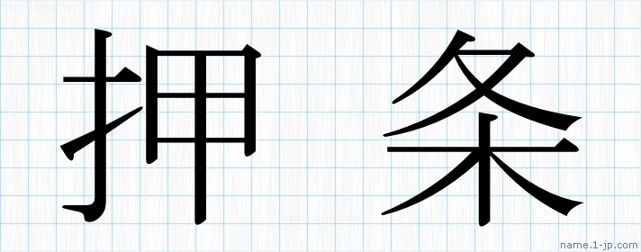 「押条」名前の見本 押条書き方