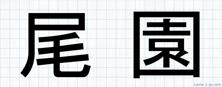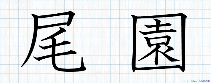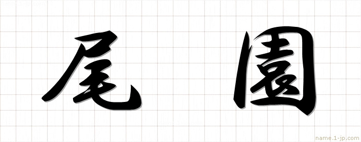 「尾園」名前の見本 尾園書き方