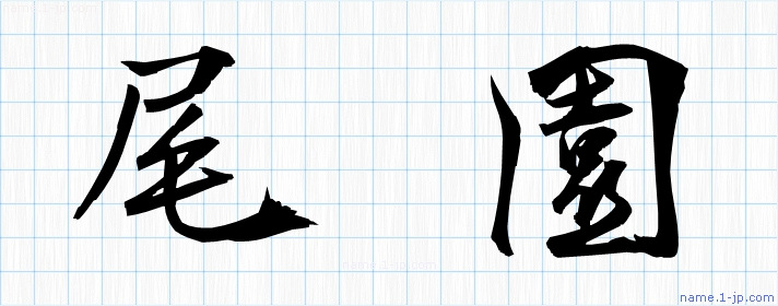 「尾園」習字見本 かっこいい尾園の名前