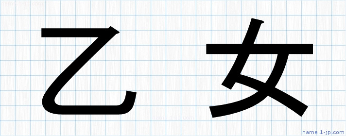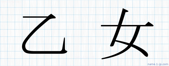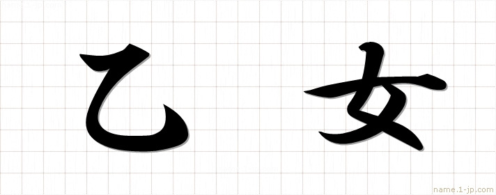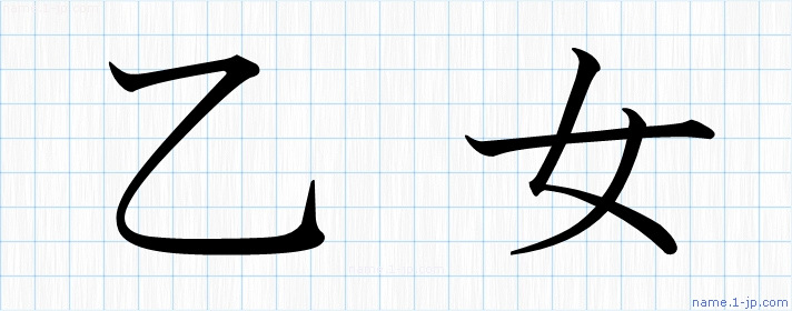 「乙女」名前の見本 乙女書き方