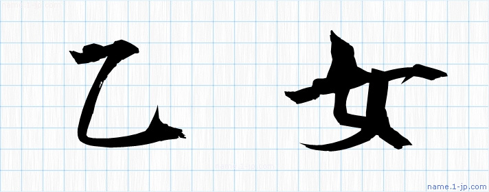 毛筆で書いた習字の見本のように綺麗な「乙女」の表記
