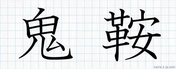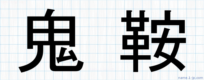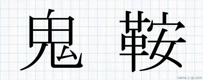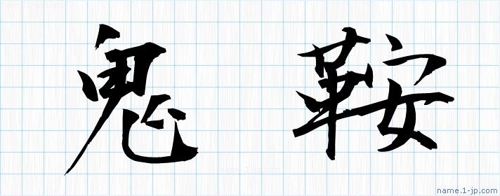 「鬼鞍」名前の見本 鬼鞍書き方