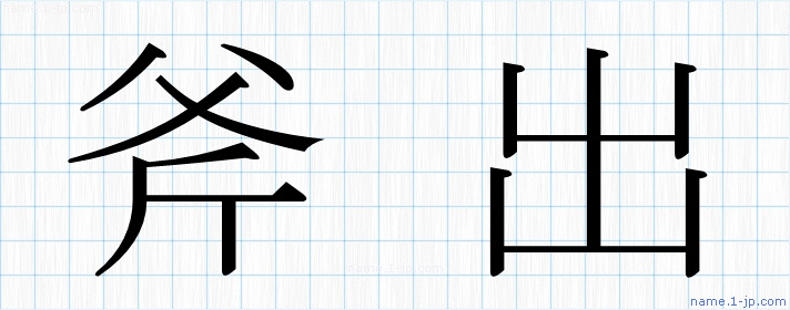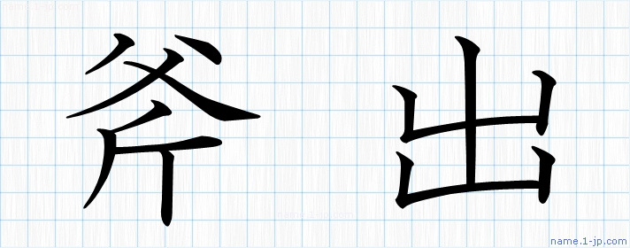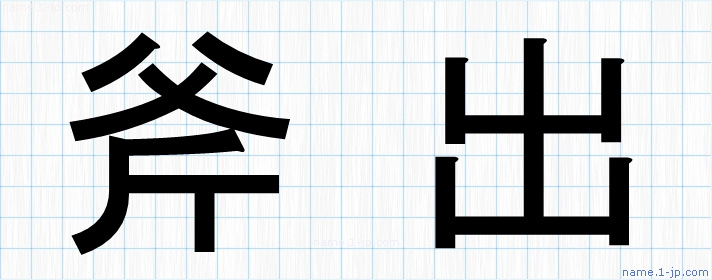「斧出」名前の見本 斧出書き方