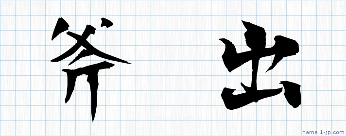 「斧出」習字見本 かっこいい斧出の名前
