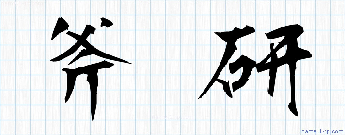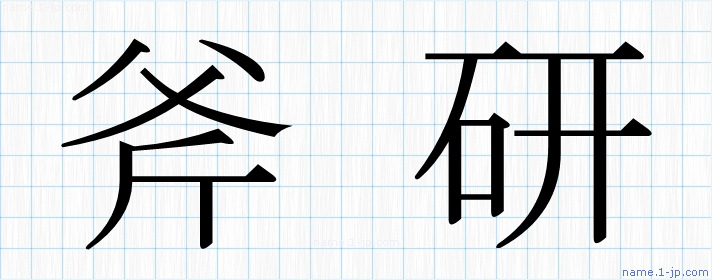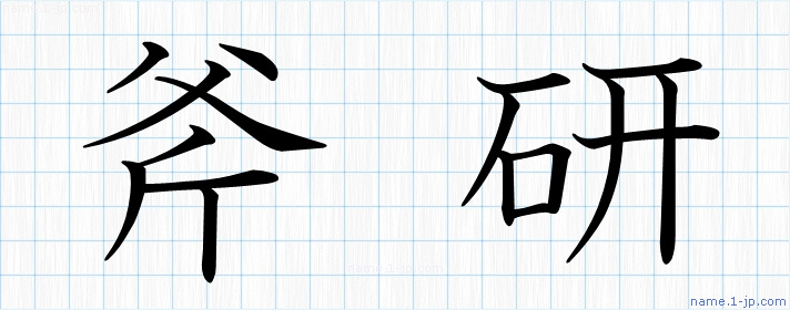 「斧研」習字見本 かっこいい斧研の名前