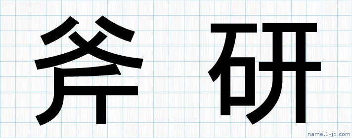 「斧研」名前の見本 斧研書き方