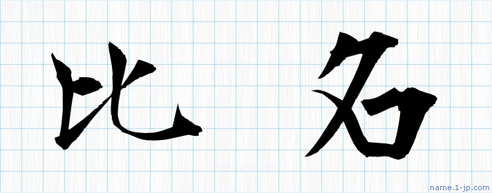 毛筆で書いた習字の見本のように綺麗な「比名」の表記