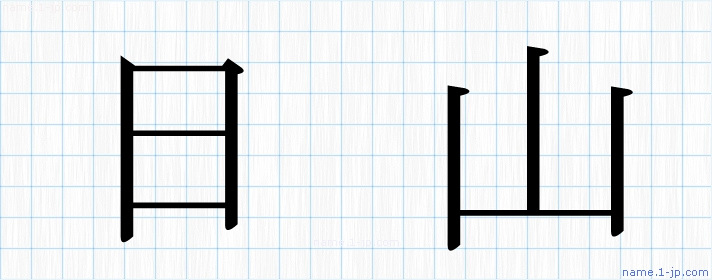 名前(日山)を対象に教科書体・ゴシック体等で表現した漢字を図鑑のように紹介