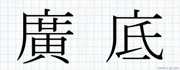 「廣底」名前の見本 廣底書き方
