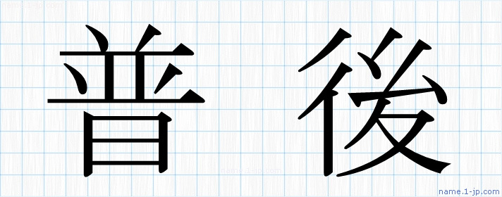 「普後」習字見本 かっこいい普後の名前