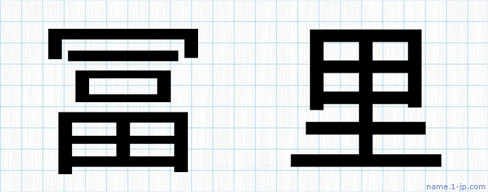 「冨里」名前の見本 冨里書き方