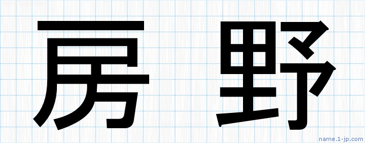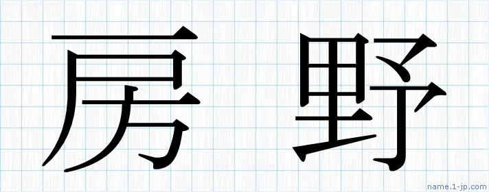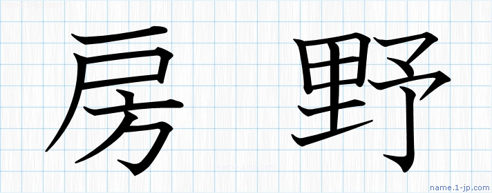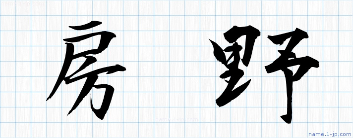 「房野」名前の見本 房野書き方