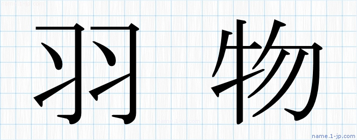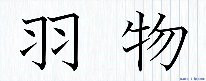「羽物」習字見本 かっこいい羽物の名前