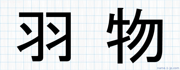「羽物」名前の見本 羽物書き方