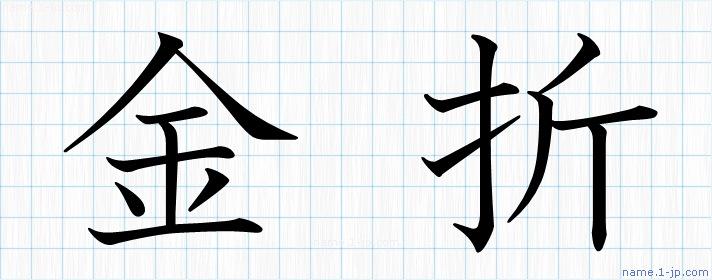 「金折」習字見本 かっこいい金折の名前
