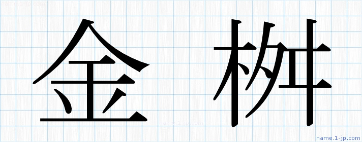 名前(金桝)を対象に教科書体・ゴシック体等で表現した漢字を図鑑のように紹介