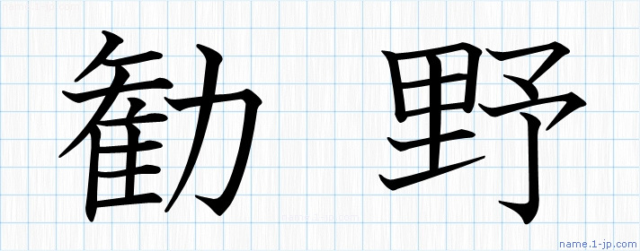 「勧野」名前の見本 勧野書き方