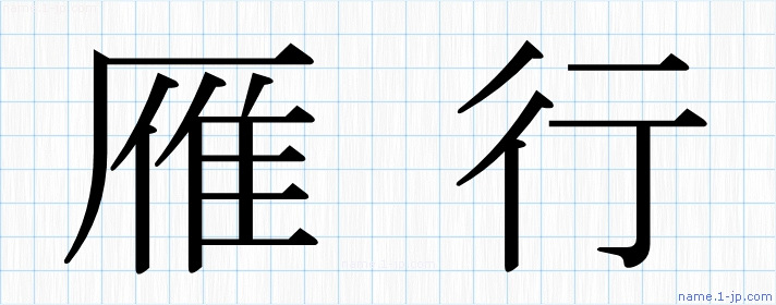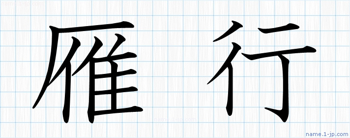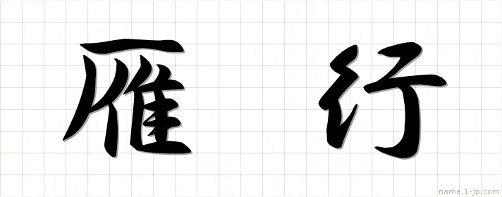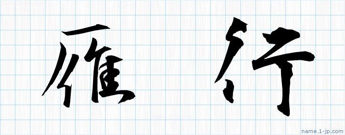 「雁行」名前の見本 雁行書き方