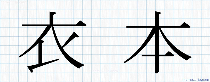 「衣本」名前の見本 衣本書き方