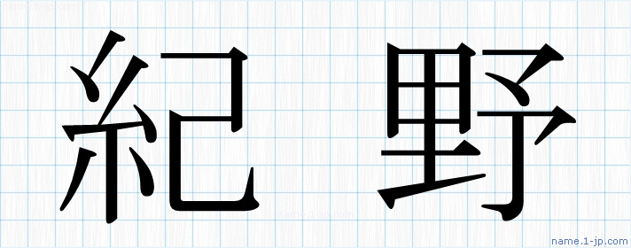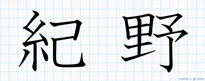 「紀野」習字見本 かっこいい紀野の名前