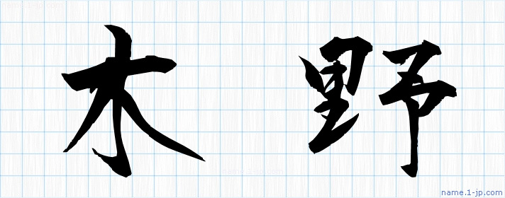 「木野」習字見本 かっこいい木野の名前