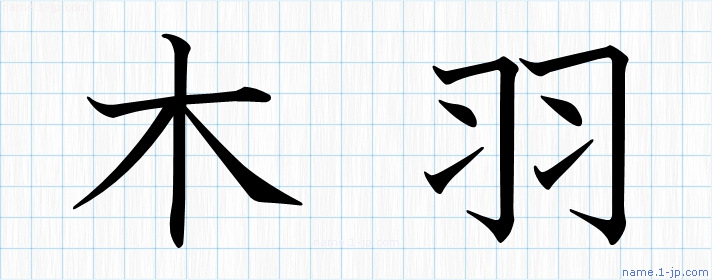「木羽」名前の見本 木羽書き方