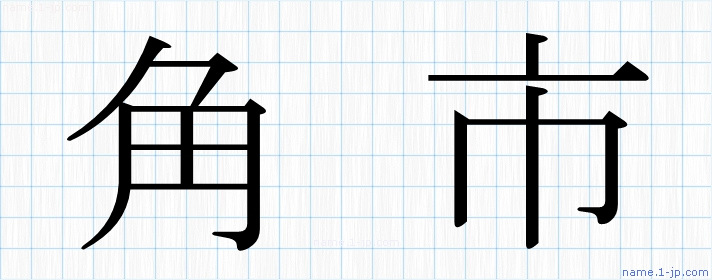 毛筆で書いた習字の見本のように綺麗な「角市」の表記