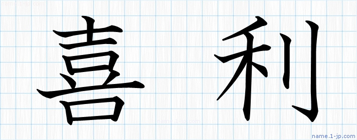 「喜利」習字見本 かっこいい喜利の名前