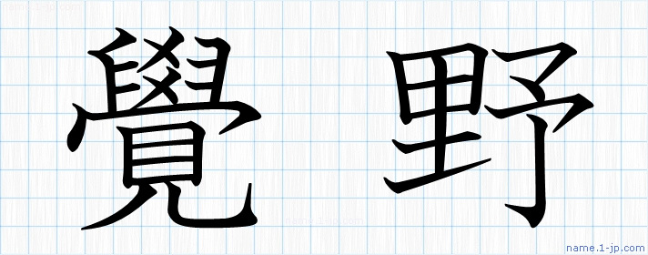 「覺野」名前の見本 覺野書き方