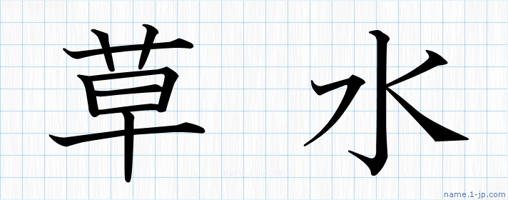 「草水」習字見本 かっこいい草水の名前
