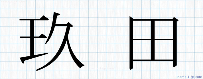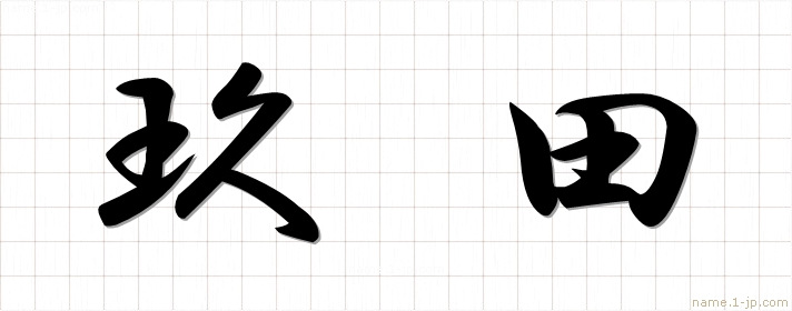 「玖田」名前の見本 玖田書き方