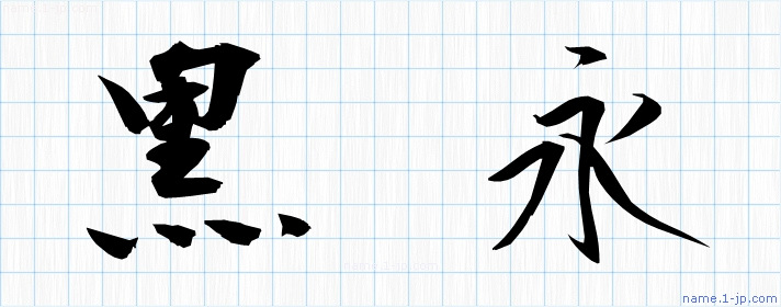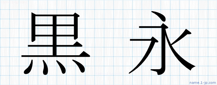「黒永」名前の見本 黒永書き方