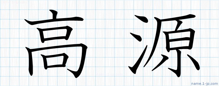 「高源」習字見本 かっこいい高源の名前