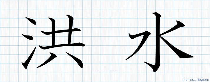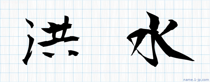 「洪水」名前の見本 洪水書き方