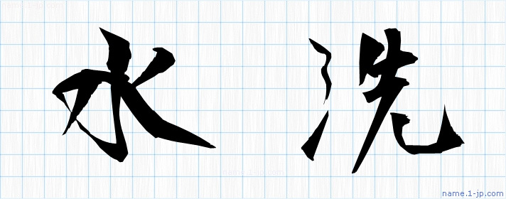 「水洗」習字見本 かっこいい水洗の名前