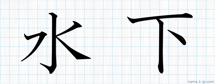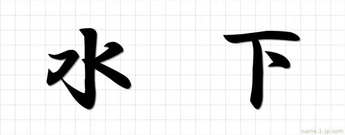 「水下」習字見本 かっこいい水下の名前