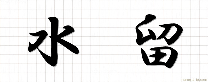 「水留」習字見本 かっこいい水留の名前