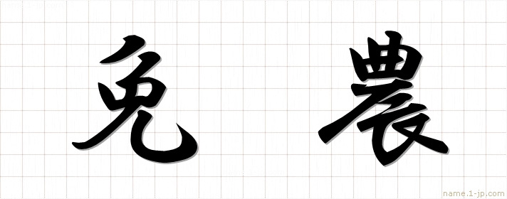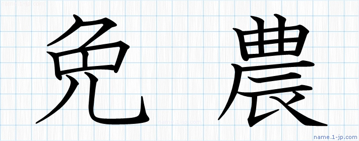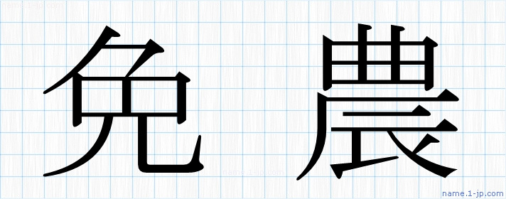 「免農」習字見本 かっこいい免農の名前