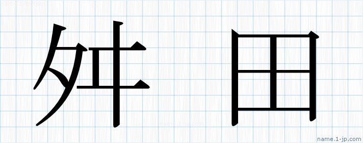 名前(舛田)を対象に教科書体・ゴシック体等で表現した漢字を図鑑のように紹介