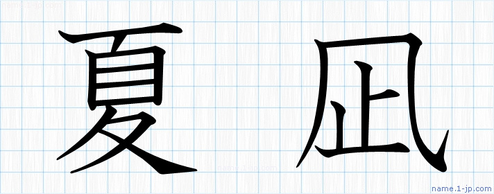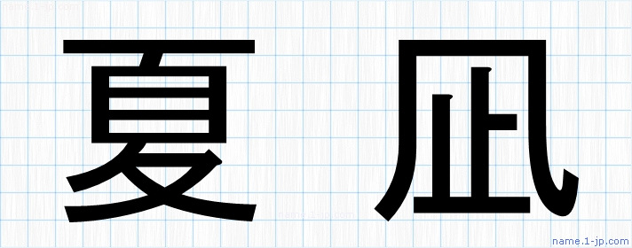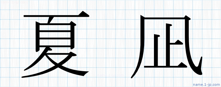 名前(夏凪)を対象に教科書体・ゴシック体等で表現した漢字を図鑑のように紹介