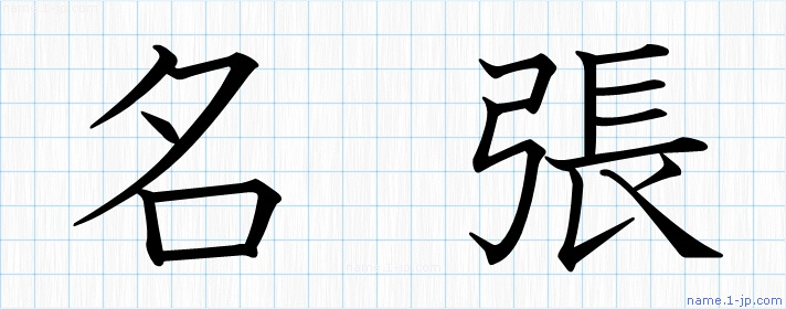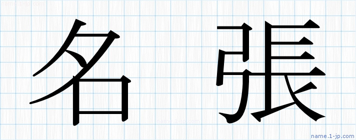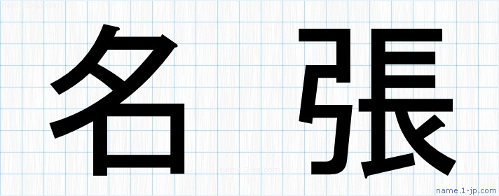 「名張」名前の見本 名張書き方