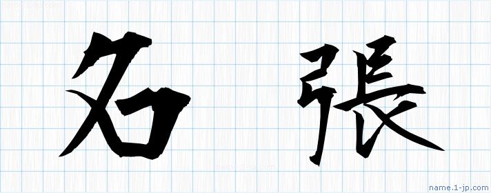 「名張」習字見本 かっこいい名張の名前