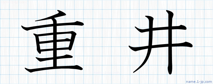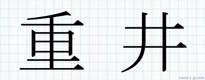 「重井」習字見本 かっこいい重井の名前