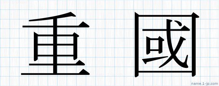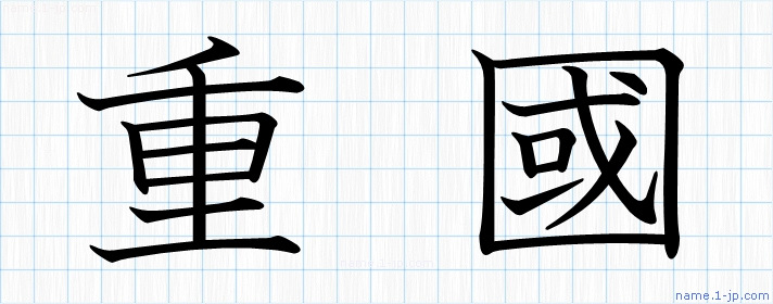 「重國」習字見本 かっこいい重國の名前