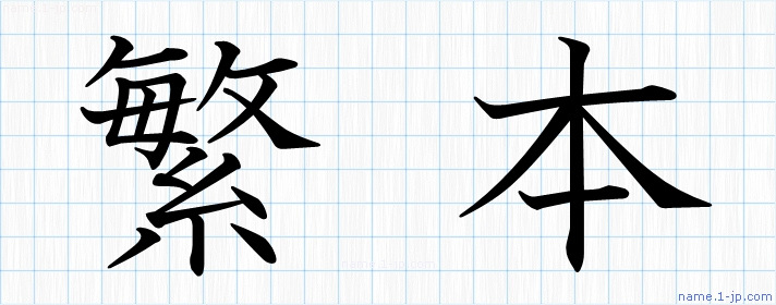 「繁本」名前の見本 繁本書き方