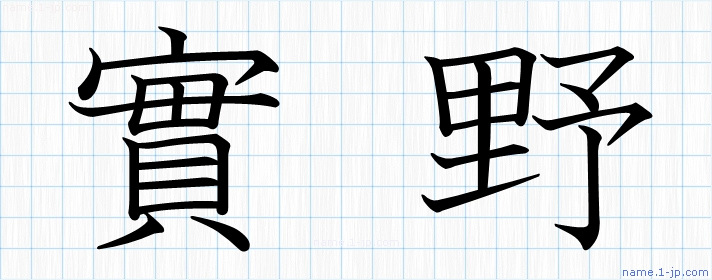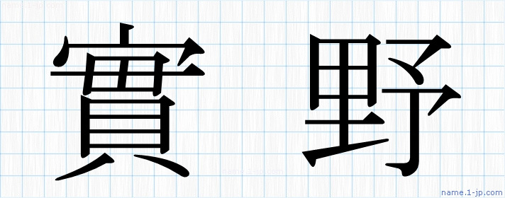 「實野」習字見本 かっこいい實野の名前