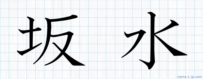 「坂水」名前の見本 坂水書き方