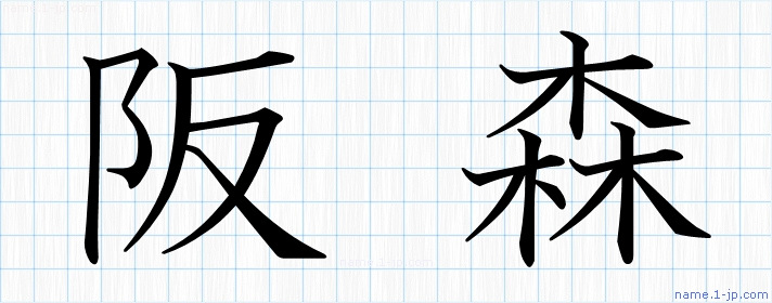 「阪森」名前の見本 阪森書き方