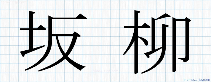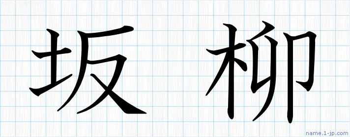 「坂柳」習字見本 かっこいい坂柳の名前